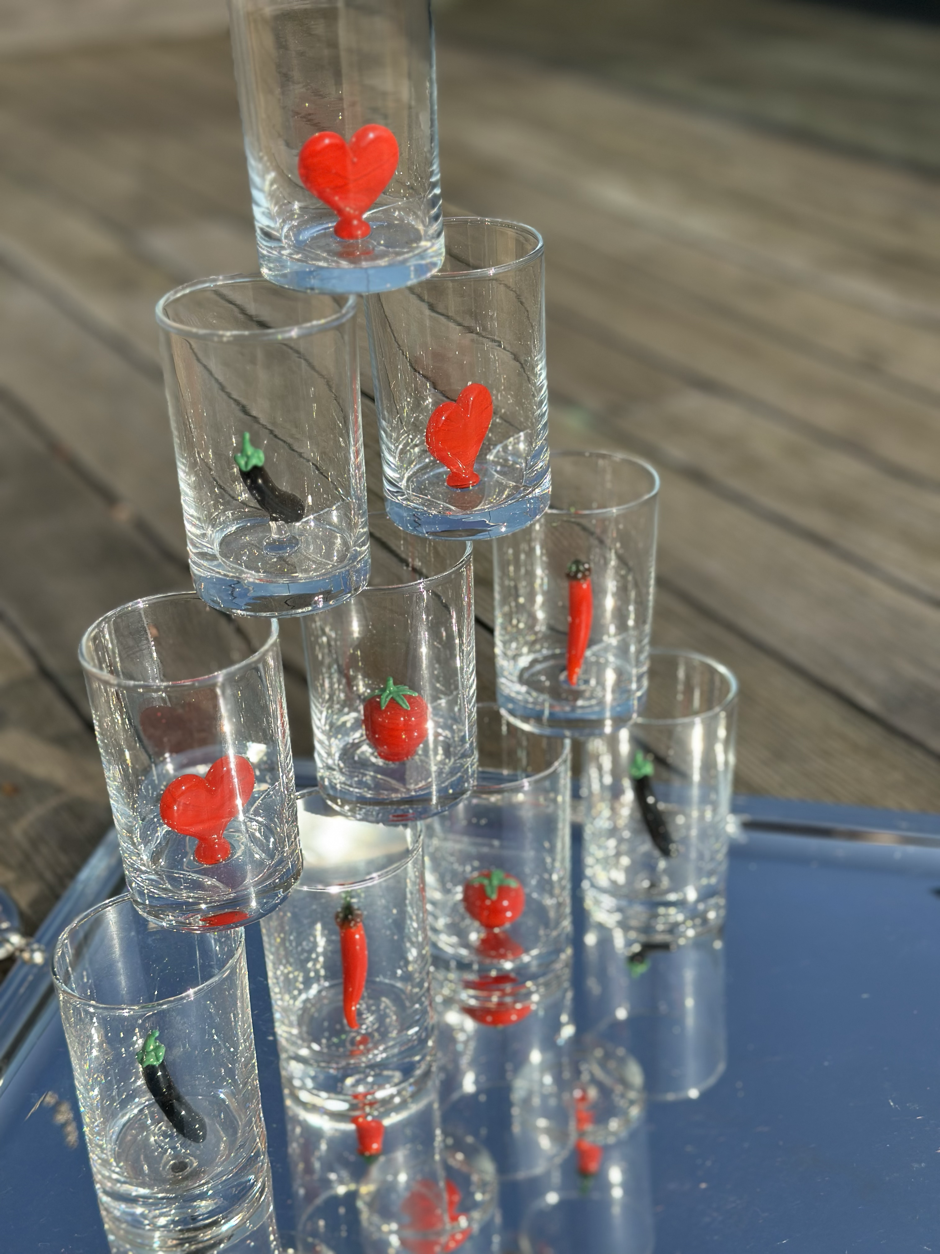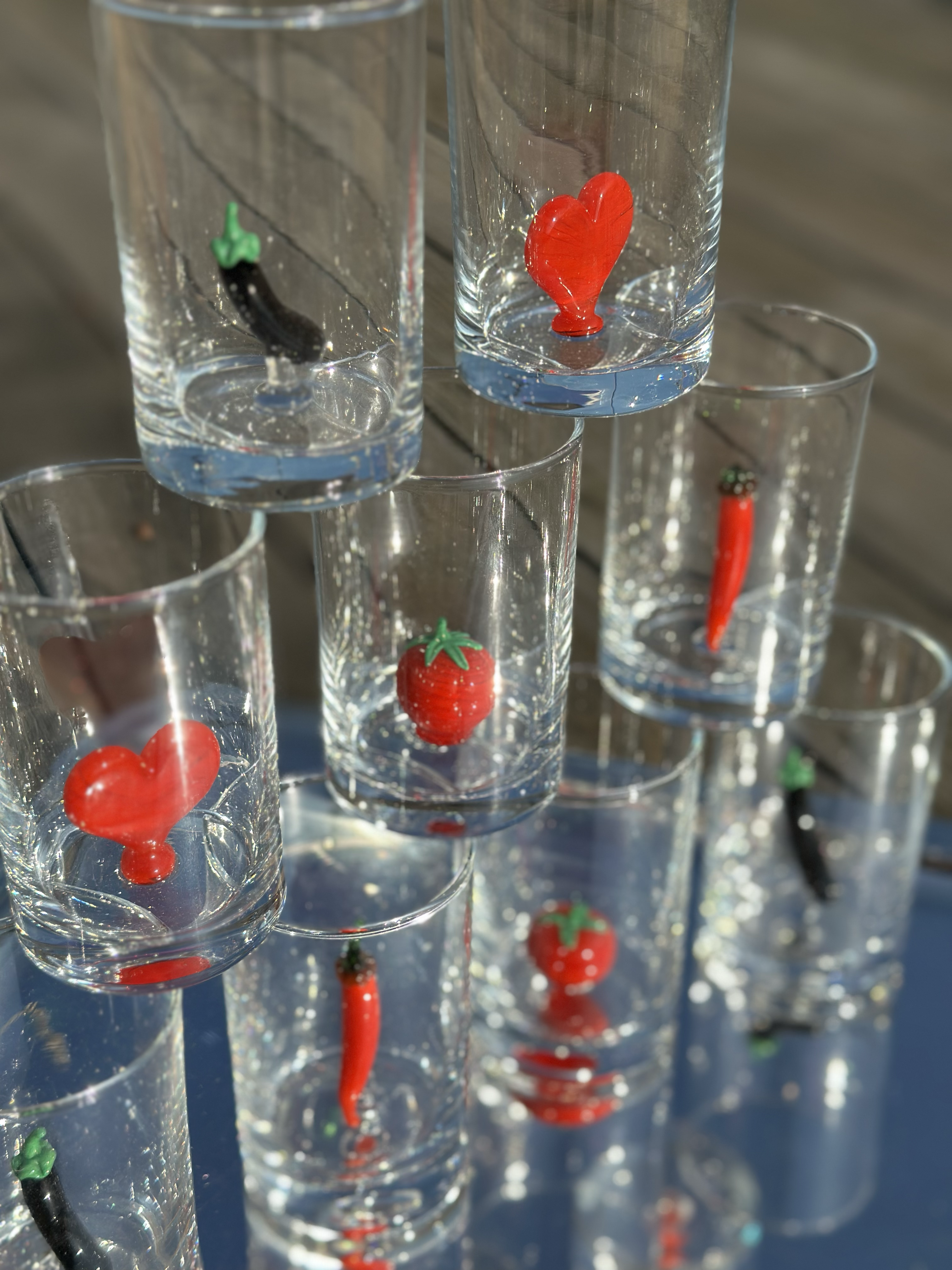 El işçiliğiyle üflenerek hazırlanan zarif bardaklarımız, özgün tasarımlarıyla sofranıza sanatsal bir dokunuş katar. Su veya dilediğiniz içecek için mükemmel olan bu bardaklar, her yudumu zarif bir deneyime dönüştürür. Sofranıza neşe katmak için kalp, lime, narenciye, domates, patlıcan veya kırmızı biber seçeneklerinden birini seçin. İstanbul’da üretilmiştir.